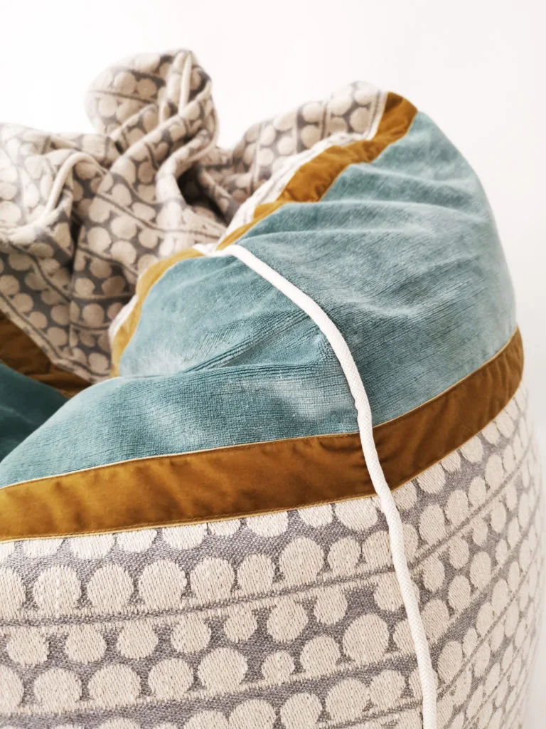 Cuscino in lino Ecrù e Nero unito al velluto color oro e bordeaux
