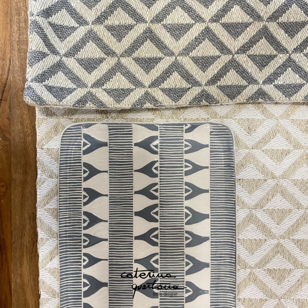 Tovaglietta in Lino disegno Bouclé colore grigio e nero