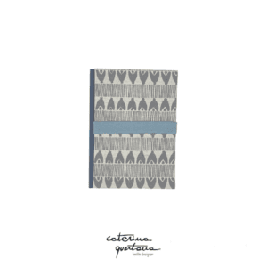 Writing notebook in linen with gray Frisée design with gray elastic